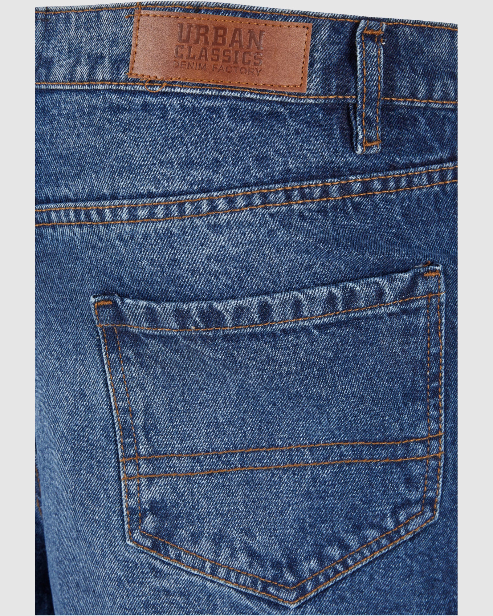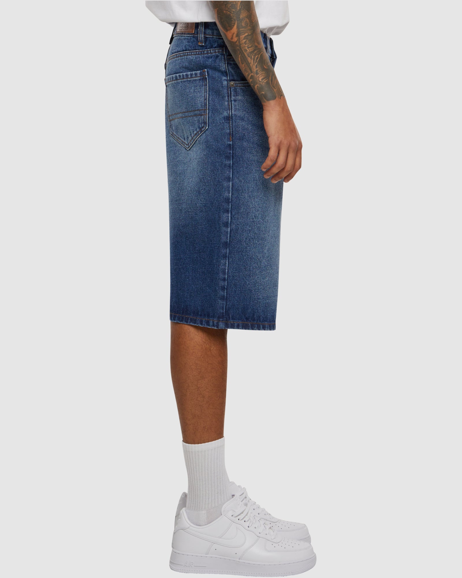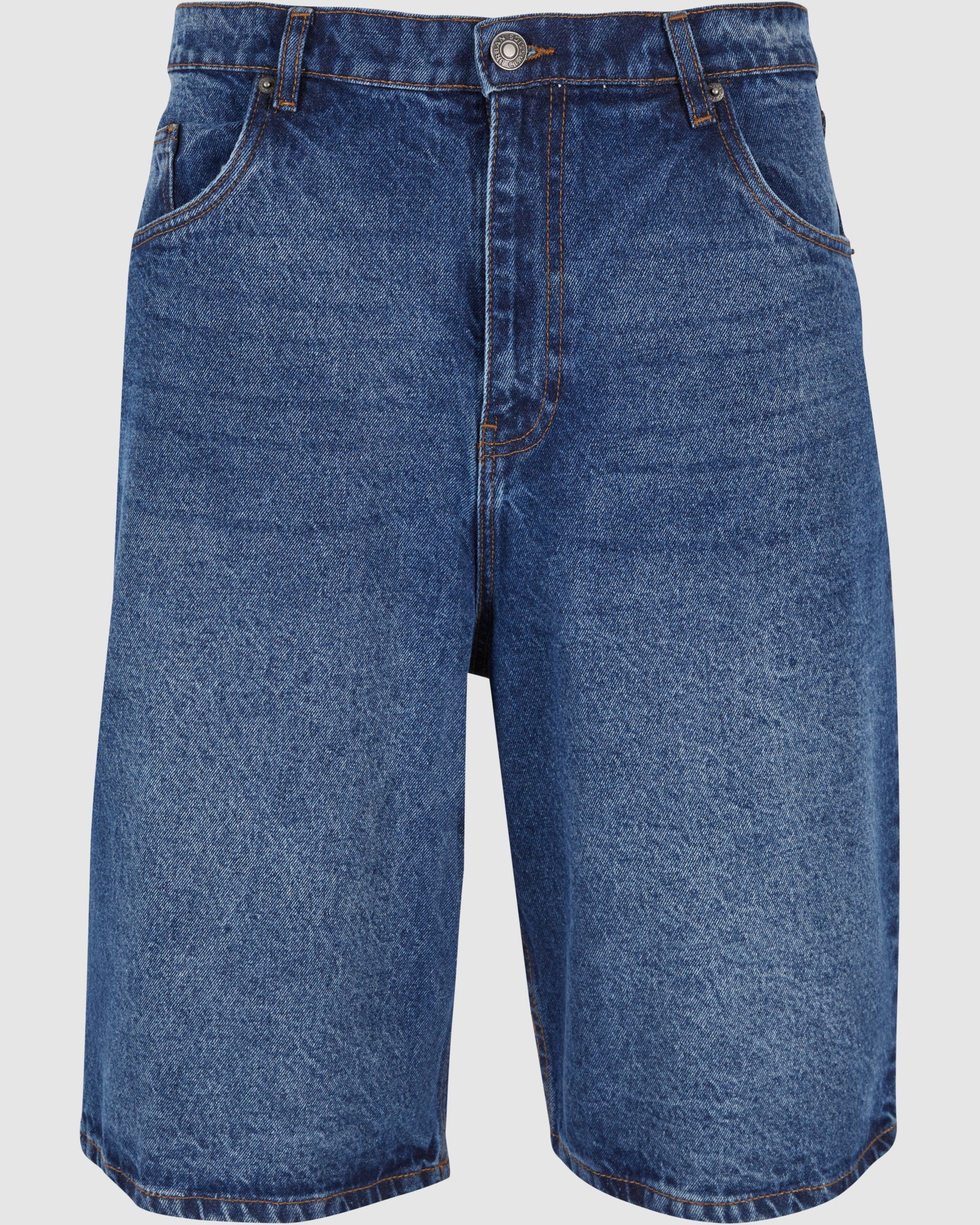 These heavy denim shorts in mid blue washed bring a timeless style and sturdy construction, ideal for casual summer wear.