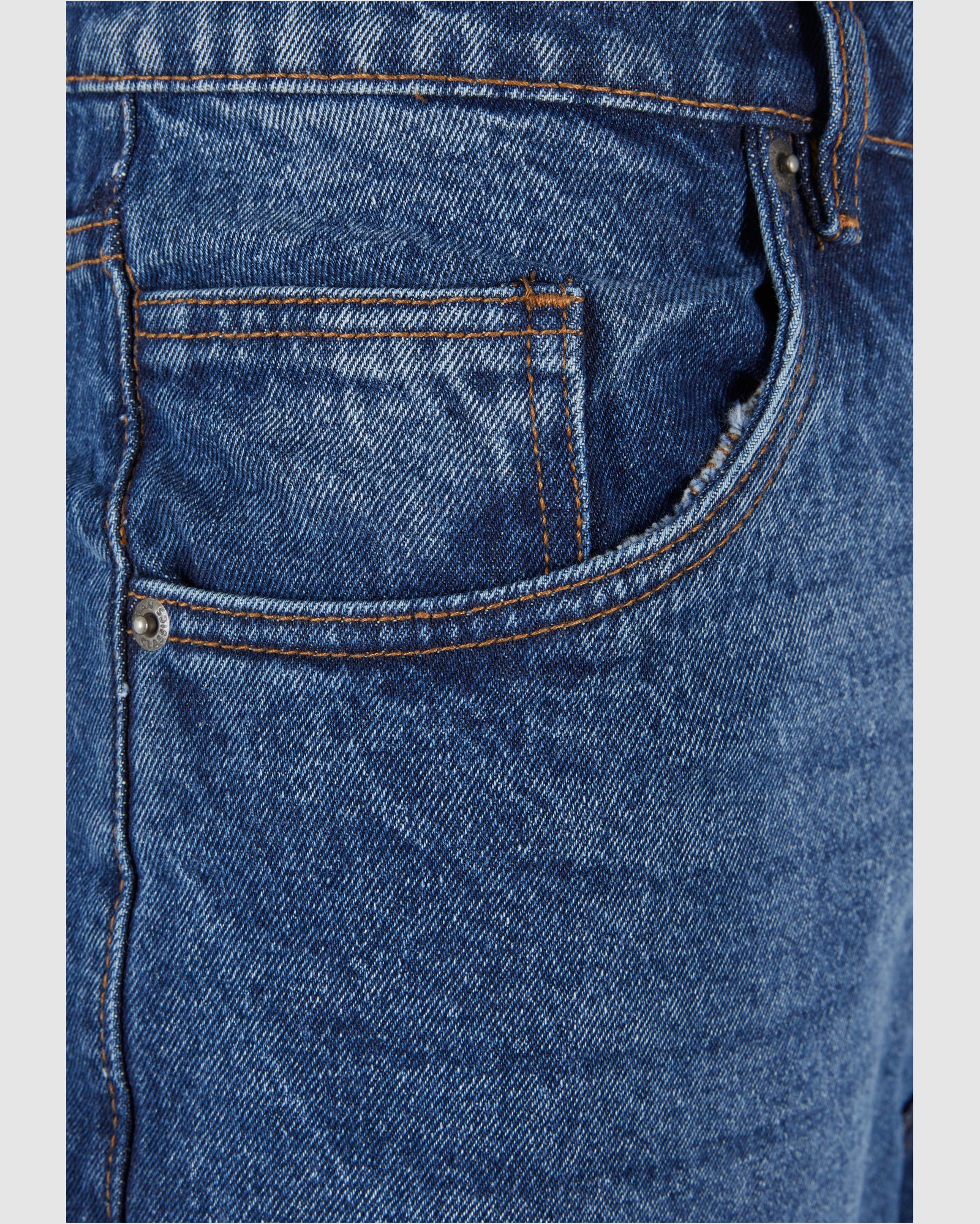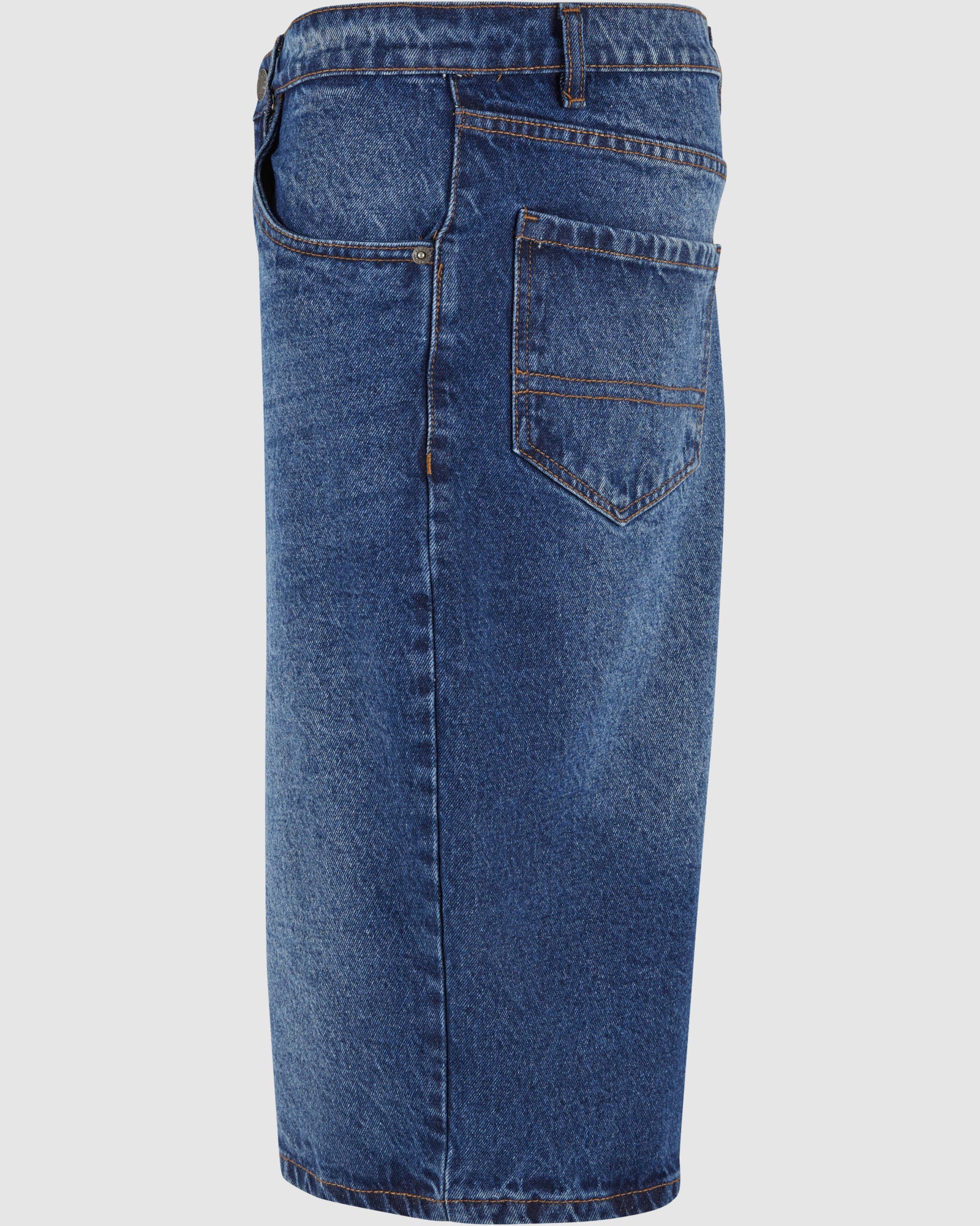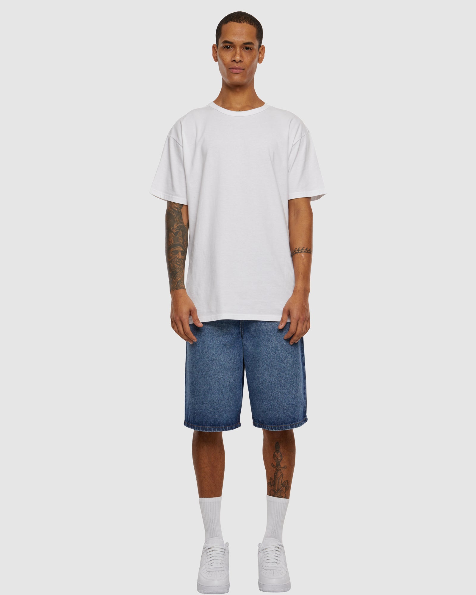 These heavy denim shorts in mid blue washed bring a timeless style and sturdy construction, ideal for casual summer wear.