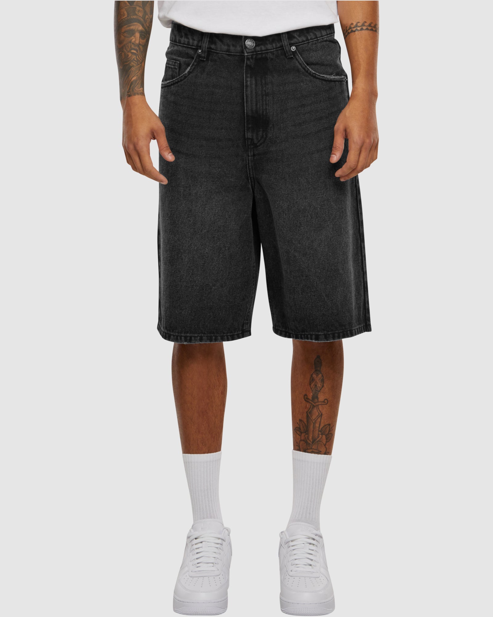 These 90's-inspired heavy denim shorts in black washed offer a relaxed fit and a classic look, perfect for warm weather.