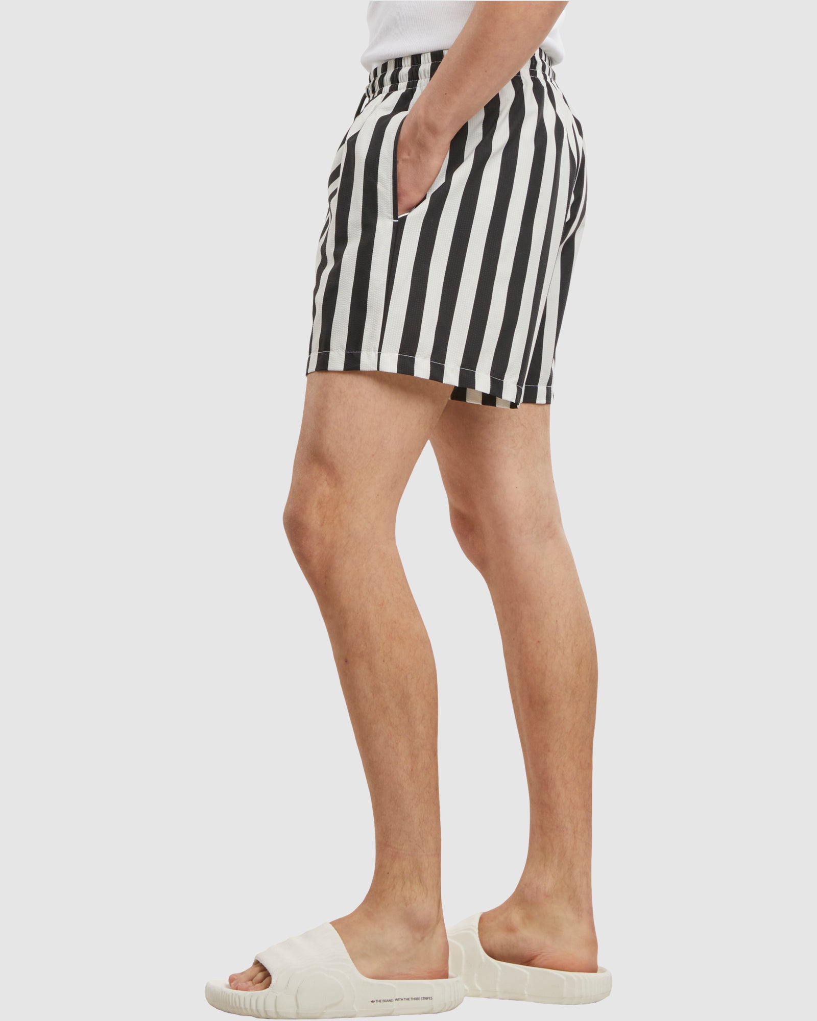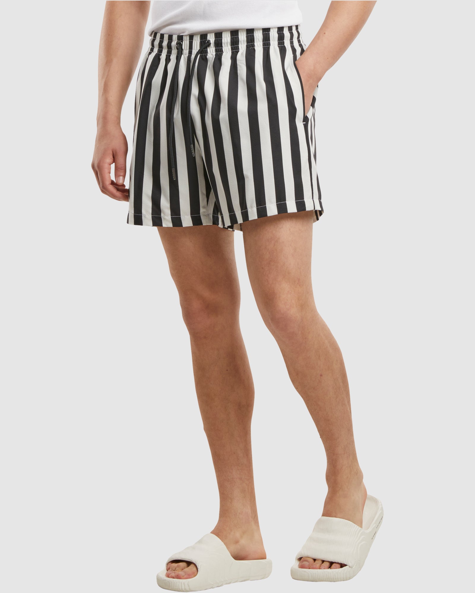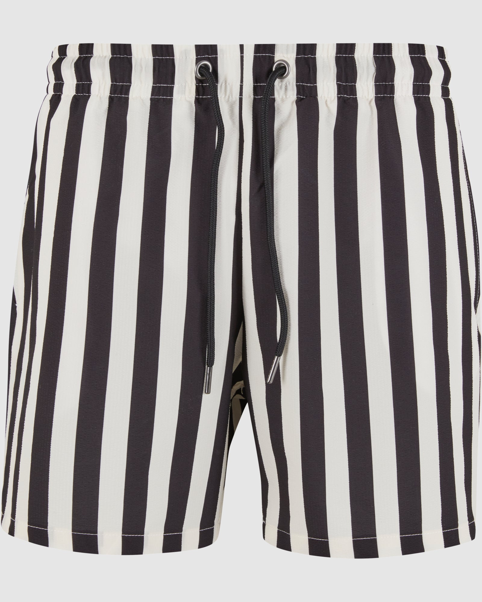 Striped Seersucker Swim Shorts - Black/OffWhite